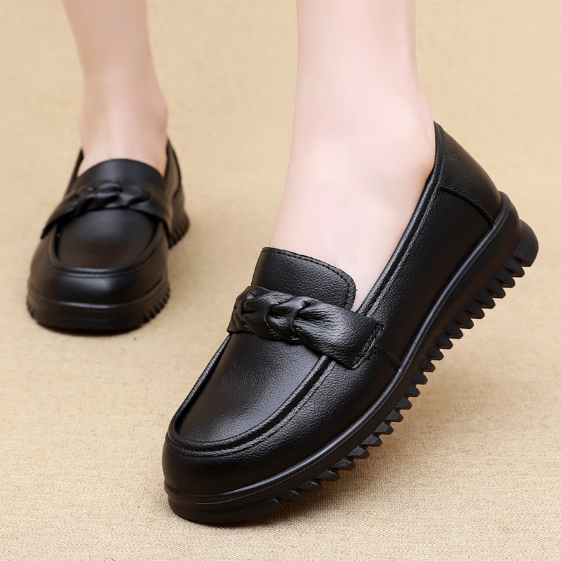 牛筋底妈妈鞋真皮防滑软底休闲中老年单鞋舒适蝴蝶结中年春秋皮鞋
