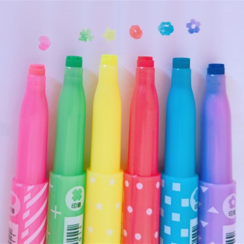 花型轮廓笔学生彩色波浪专用记号笔儿童花型花边曲线型花色笔荧光儿童记号手抄报印花线条手账滚轮线型笔