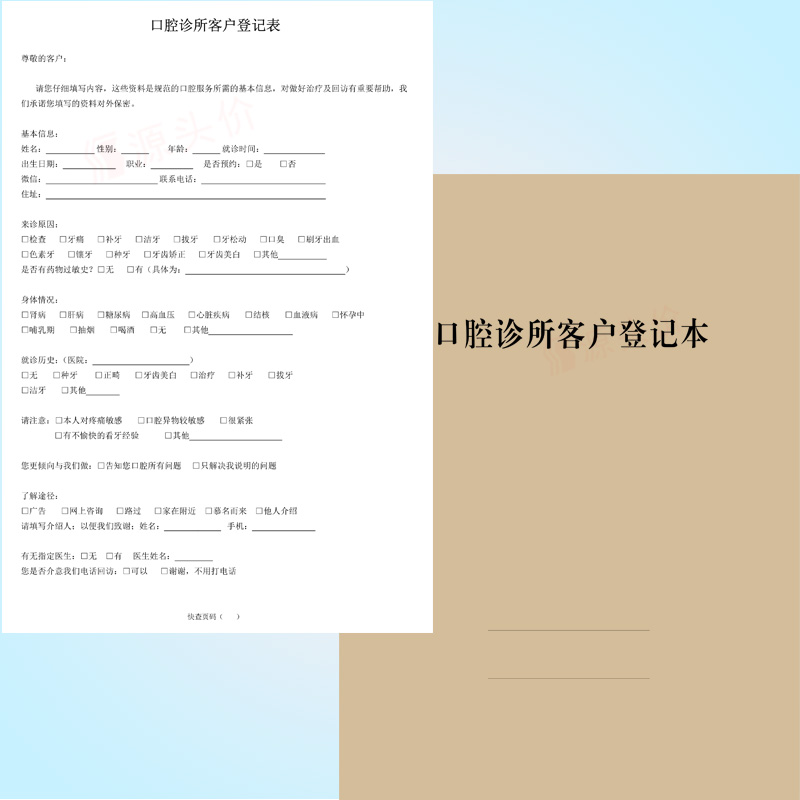 口腔诊所客户登记本门诊牙科信息病患者资料就诊牙科诊所顾客记录