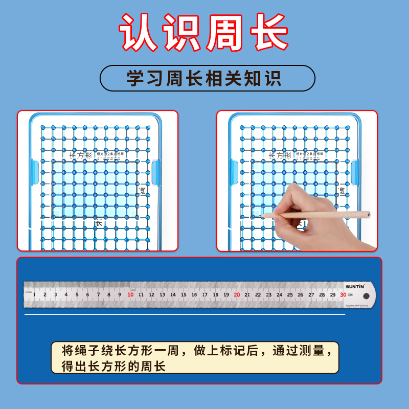 六鑫长方形和正方形面积与周长推导演示器几何图形橡皮筋勾勒钉板小学数学三年级面积与周长推导学习教具