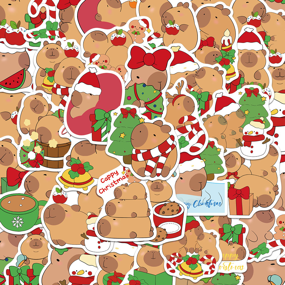 100张圣诞节卡皮巴拉贴纸卡通可爱手账手机壳笔记本装饰防水贴画