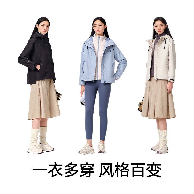 骆驼女装休闲短款外套春秋新款防风防水三合一可拆卸冲锋衣女外套