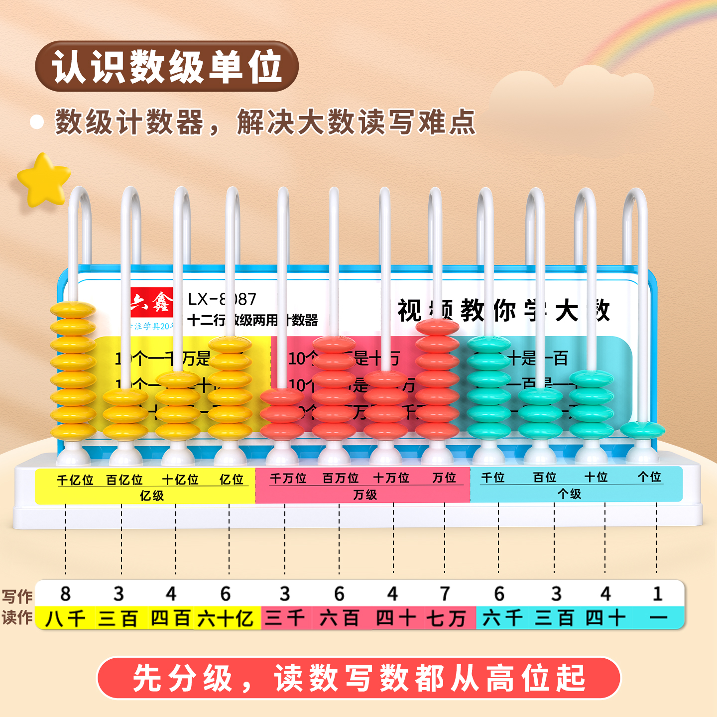 四年级数学教具十二行计数器小学生带小数点小学生1-4年级数级两用十三行数级计数器教程计数架数学教材专用