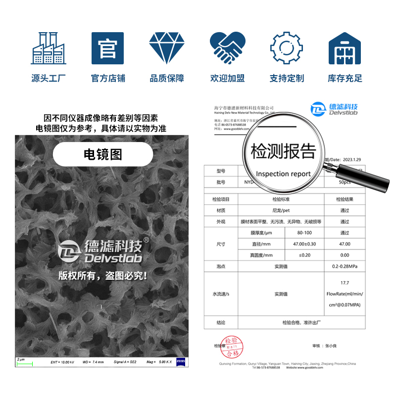 德滤有机尼龙微孔滤膜纳米级0.05-10um实验室溶剂抽滤提纯清洁度检测中药样品过滤DMSO