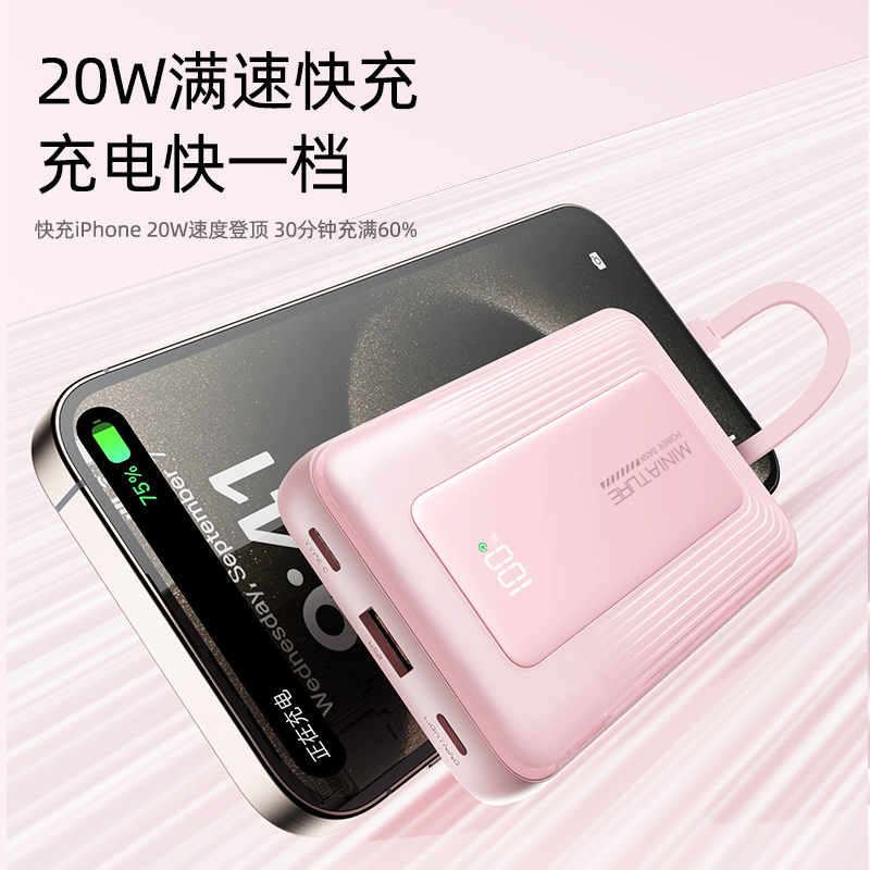 【充电宝3C认证可上飞机】政府补贴15%品胜mini小相机2025新款迷你超薄小巧便携自带线快充适用华为苹果小米
