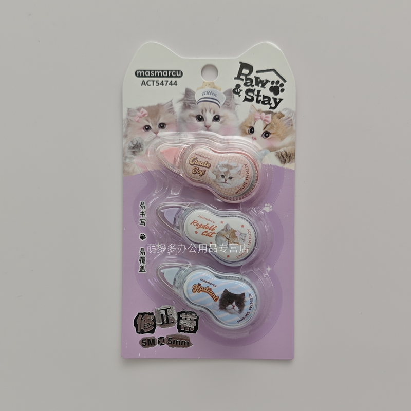晨光文具奇好迷你修正带全是喵三个装涂改带小学生考试改正带不易断带实惠装小巧便携优选带芯ACT54744白5M