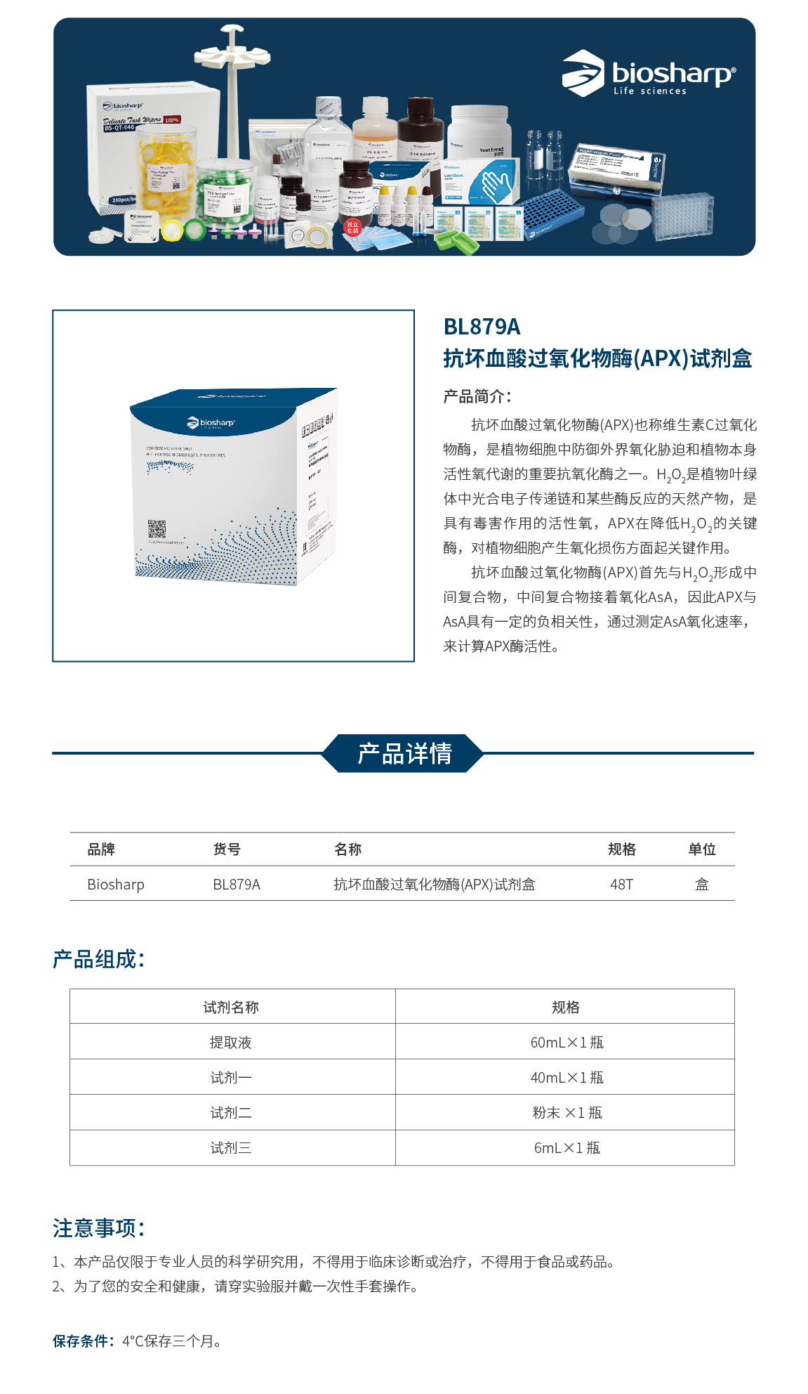 Biosharp BL879A /B 抗坏血酸过氧化物酶(APX)试剂盒