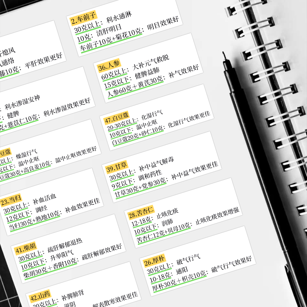 100张中药之剂量贴纸中药用药剂量中医健康养生考研知识点创意diy