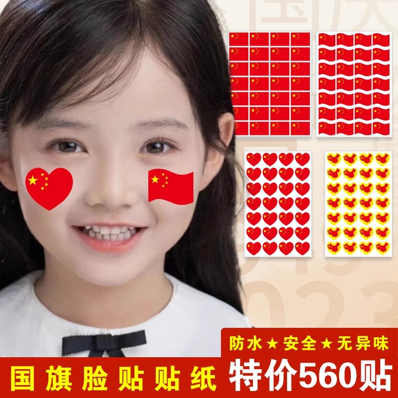 10.1中国五星小红旗贴贴纸脸贴纸国庆节贴爱心贴画手臂贴纸幼儿园