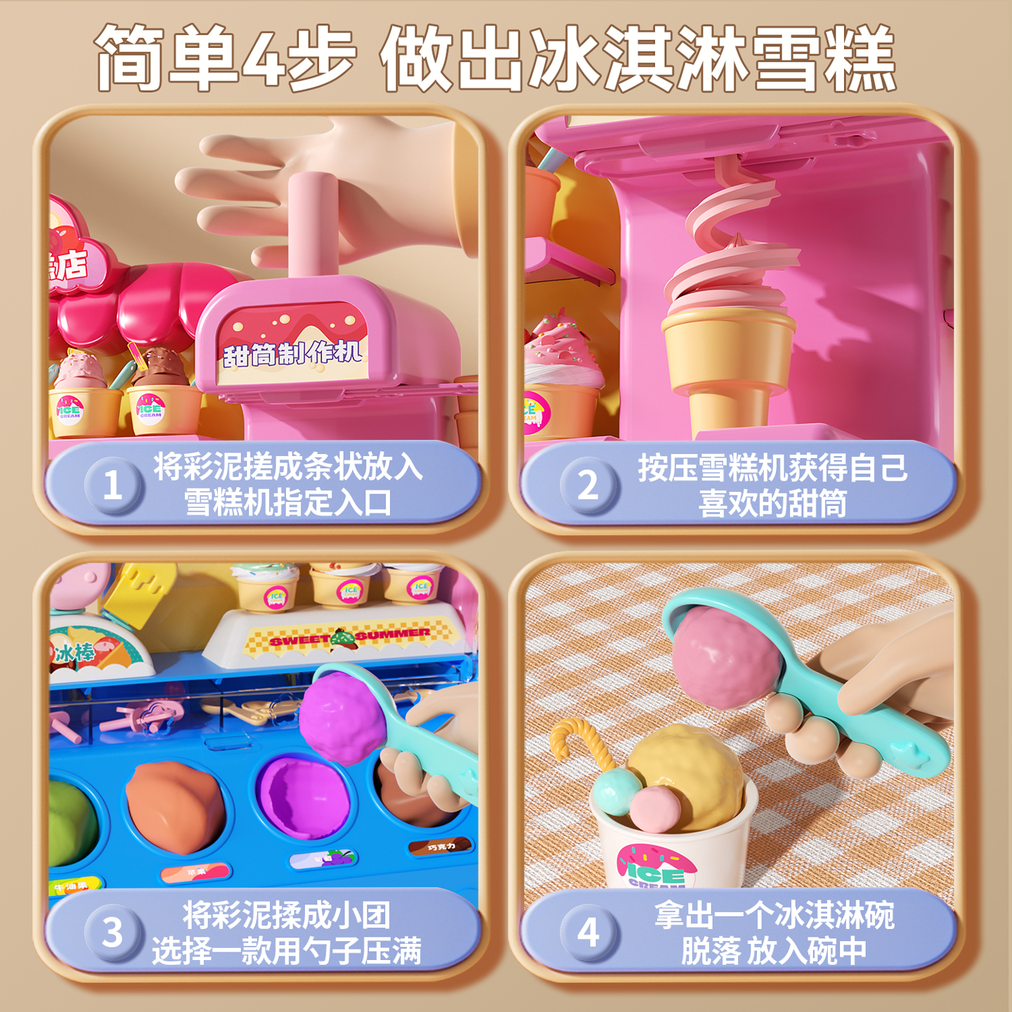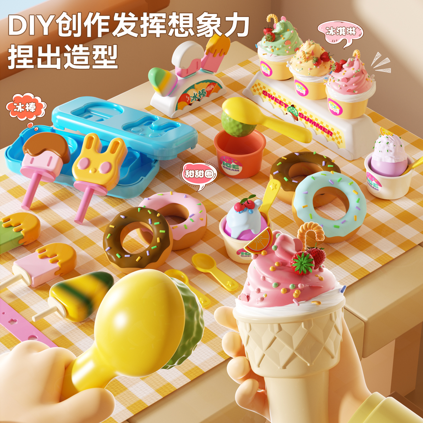 儿童过家家彩泥雪糕店手工diy益智玩具套装冰淇淋橡皮泥3-6岁女孩