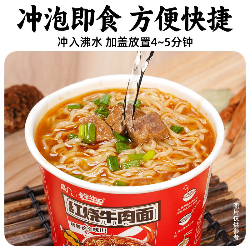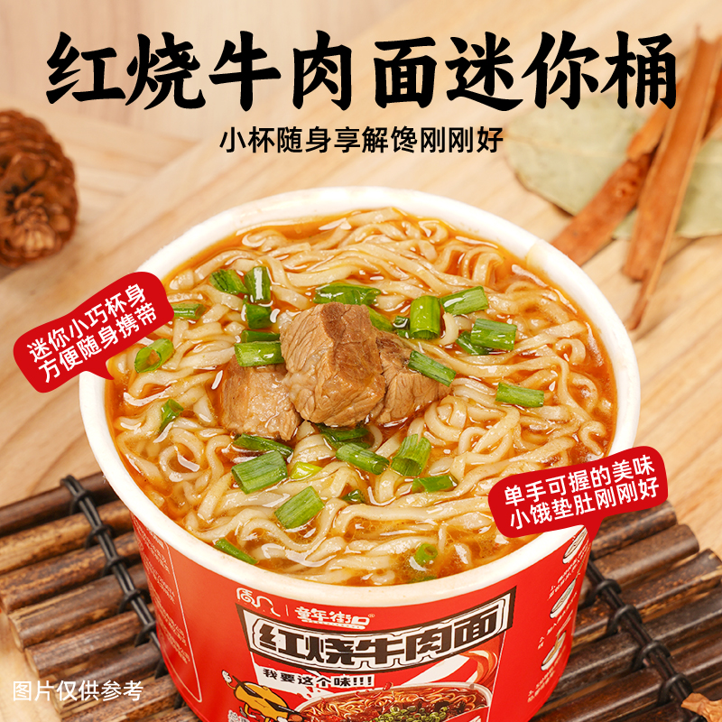 【10桶装】迷你桶红烧牛肉面好吃过瘾劲爽拉面免煮冲泡速食夜宵