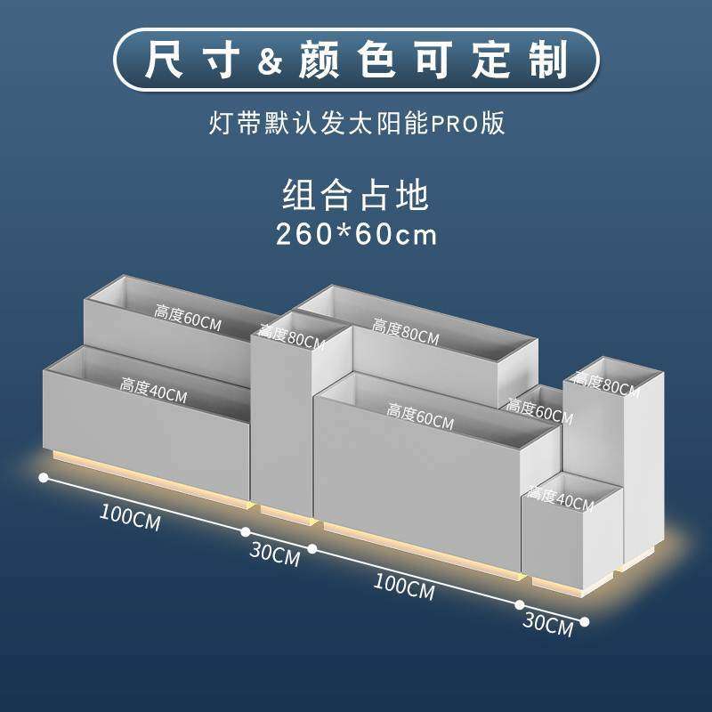 户外花箱组合庭院太阳能灯箱铁艺花坛围栏隔断售楼部不锈钢花槽