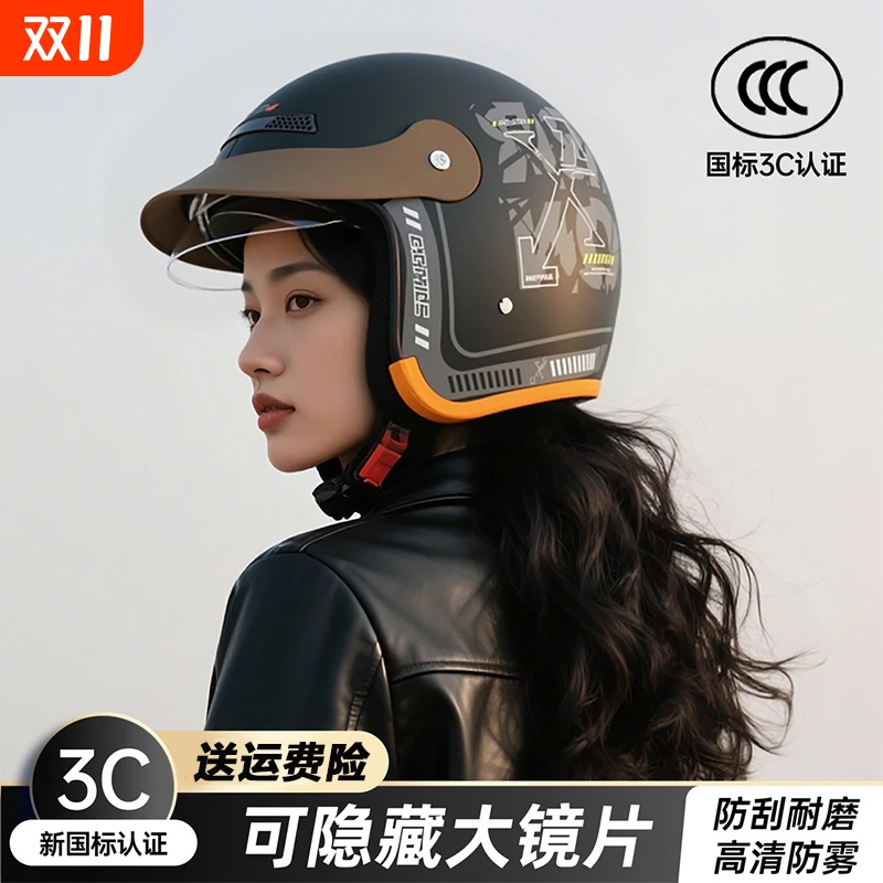 国标3C认证电动摩托车头盔男女士四季通用复古半盔夏季防晒安全帽