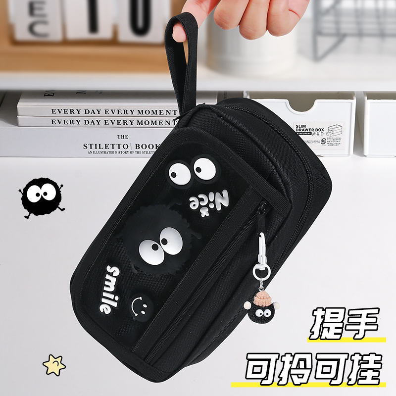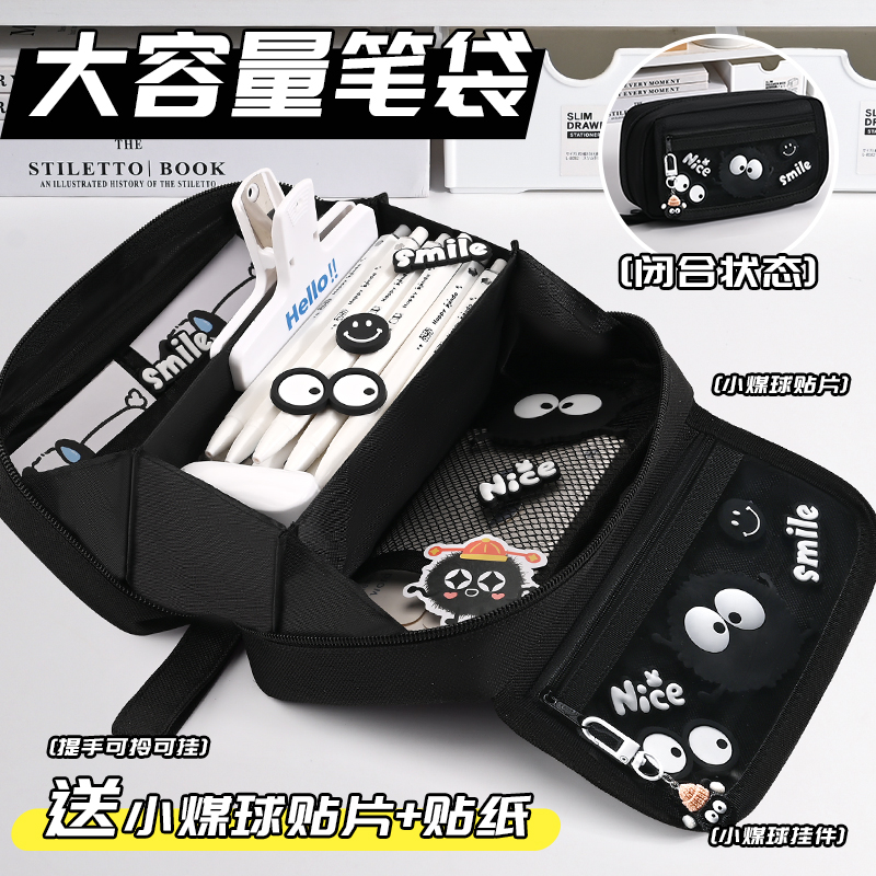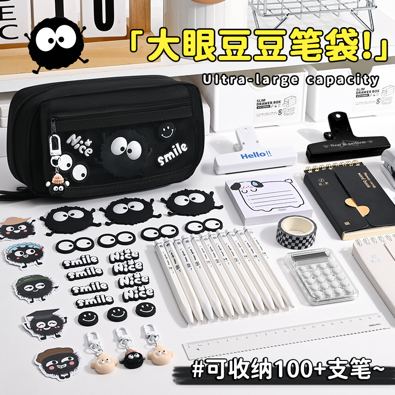 2025新款超火小煤球笔袋女孩大眼豆豆文具盒高一年级大容量铅笔盒中小学生小众男孩学习用品颜值简约创意痛包