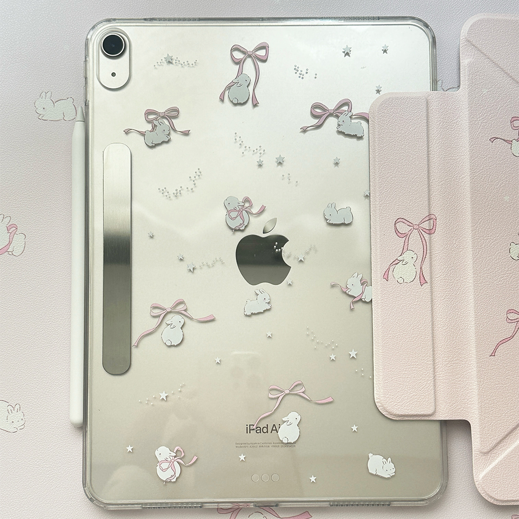 kiki原创/粉色蝴蝶结星星可爱荔枝纹ipad肤感三折Y折磁吸保护壳带搭扣air65/4平板套pro11寸可拆