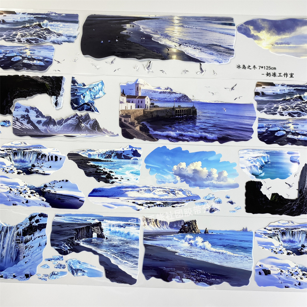 手帐分装胶带a714冰岛之冬冻奶工作室PET古风素材账流麻diy贴纸