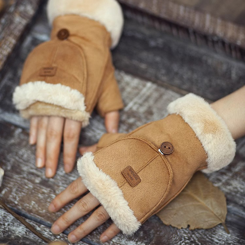 Classy key新加坡设计师联名款加绒保暖防寒翻盖露指可触屏手套女
