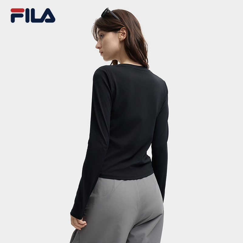 FILA斐乐女针织长袖T恤2025秋新款简约修身弹性百搭显瘦圆领上衣