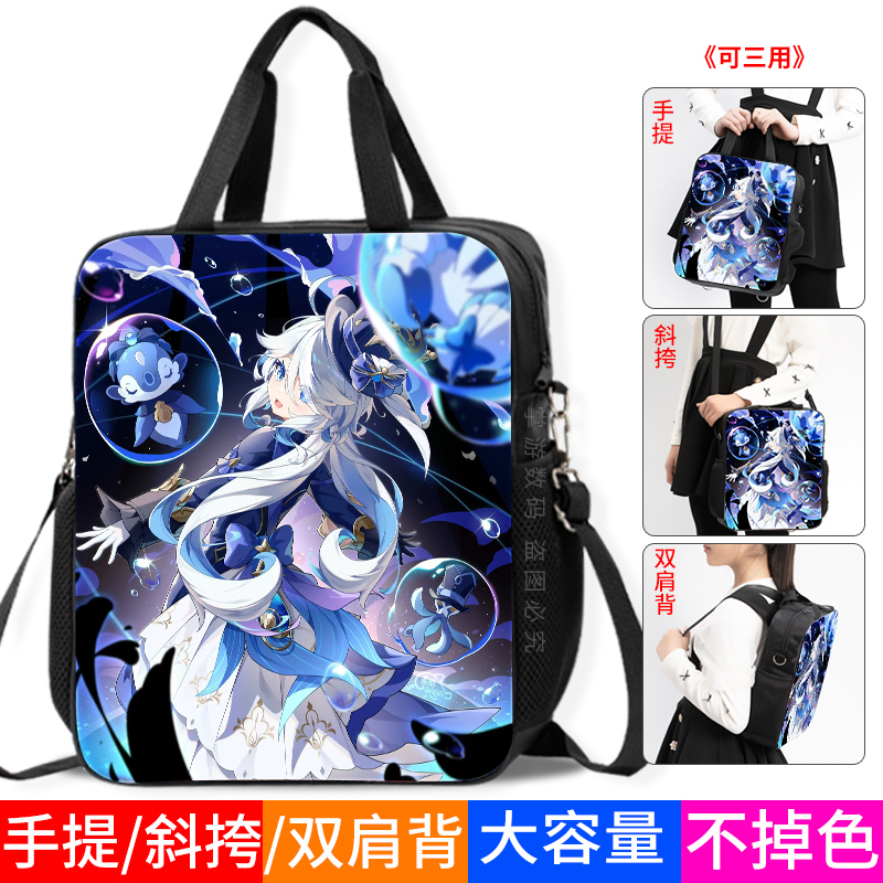 大容量补习袋知更鸟砂金学生手提书袋阿刃芙宁娜双肩包儿童补习袋斜跨包防水帆布袋学习补课包中小学生手拎袋