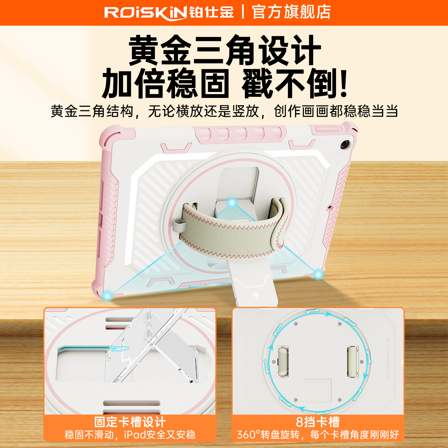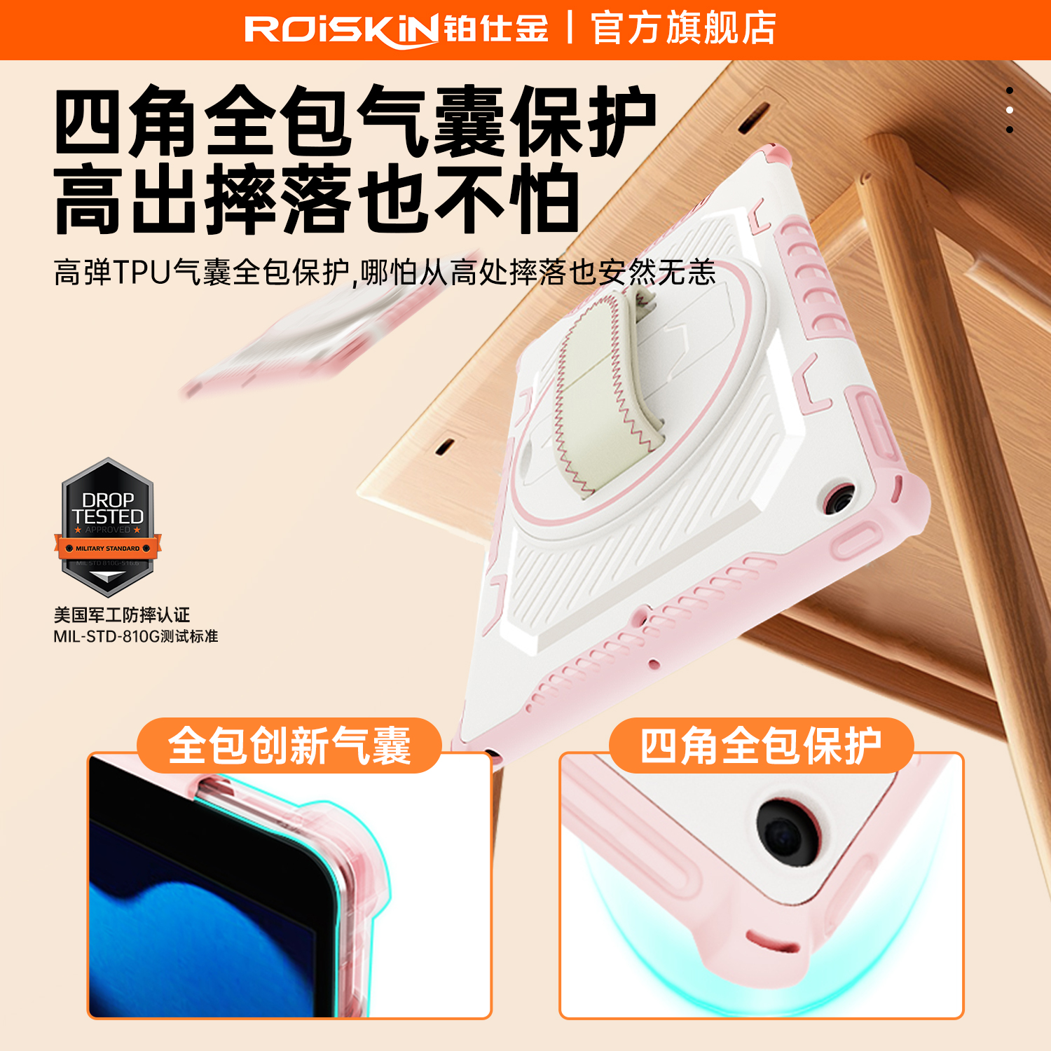 roiskin适用苹果ipadpro2022保护壳12.9轻薄防摔防弯第8/9代11寸全包10.9硅胶air5保护套带笔槽360度旋转支架