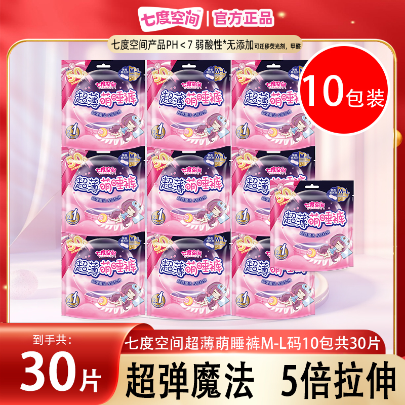 七度空间裤型卫生巾夜用超薄萌睡裤M-L码女经期用姨妈巾正品保障