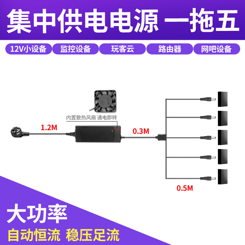 监控摄像机1分5路12V2A3A5A8A10A15直流一拖五八多路集中供电源通