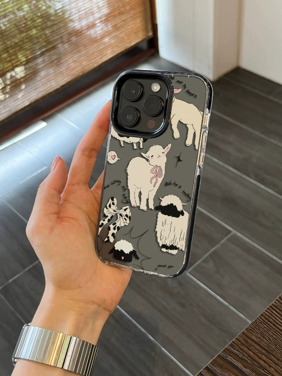 可爱复古蝴蝶结羊驼适用苹果17promax手机壳新款iPhone15小众11卡通13可爱女款12全包保护套16pro透明14防摔