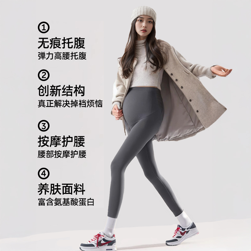 孕之彩孕妇打底裤秋外穿鲨鱼裤无痕提臀瑜伽裤2025秋冬新款托腹裤