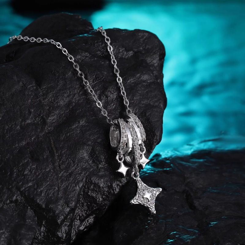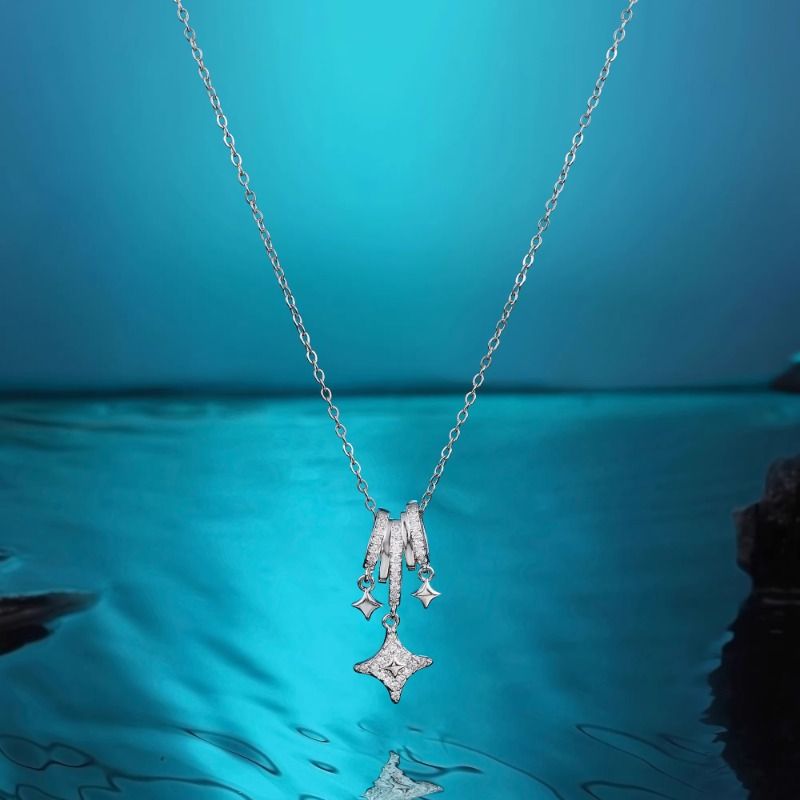 四芒星吊坠项链女圆环转运钛钢锁骨链满天星毛衣链挂脖高级感配饰