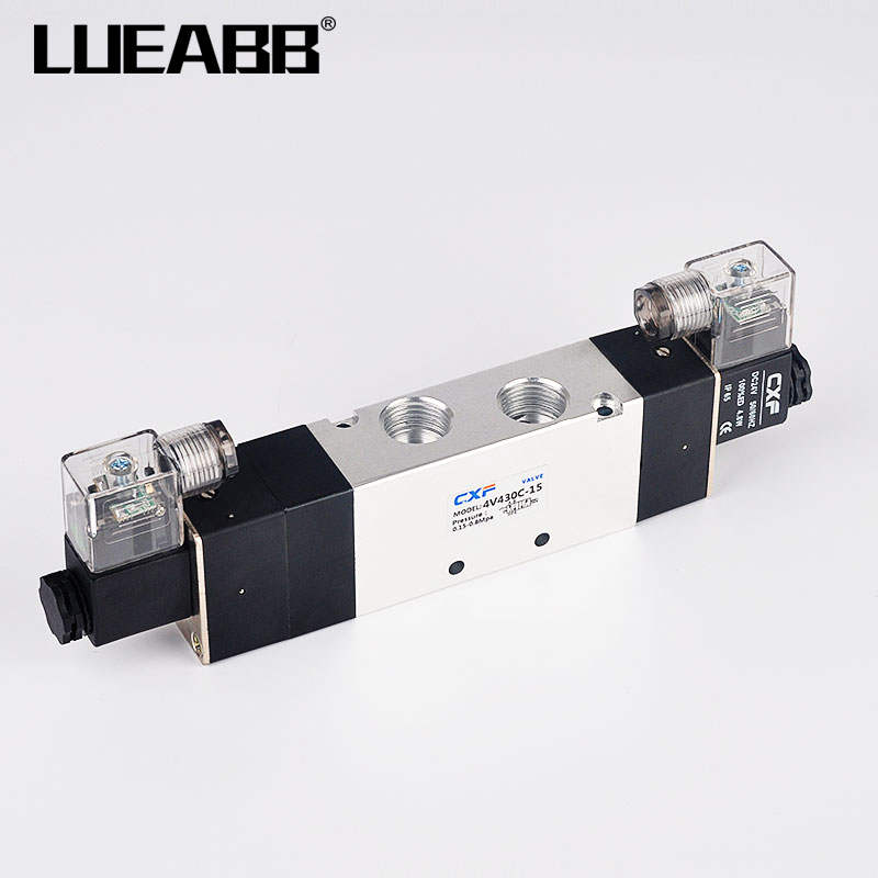 。亚德型电磁阀三位五客通4V40C-15双电控气阀元气动件换向阀220V