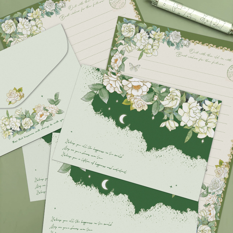 创意手写信封信纸栀子花开插画信稿纸ins唯美信笺手写情人节情书毕业贺卡生日礼物