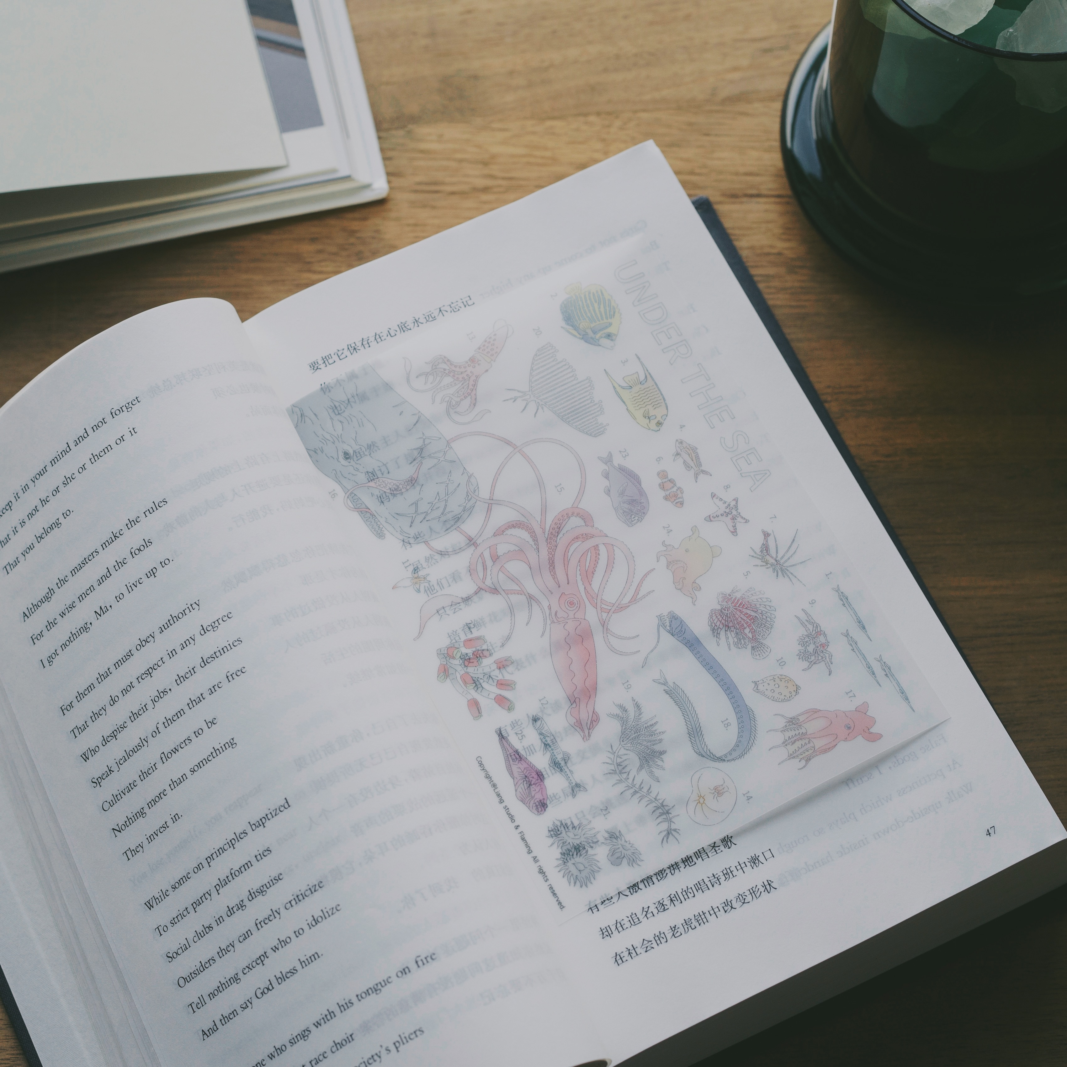 灼热Flaming现货Under the sea深海书签套装硫酸纸轻薄半透明礼物