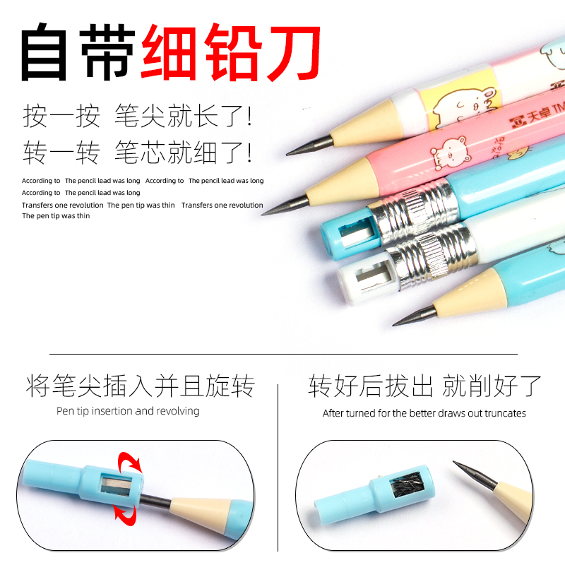 天卓自动铅笔小学生专用一二三年级无毒幼儿园初学者加粗不断芯2b2比铅笔考试涂卡笔2.0免削铅笔自动笔写不断