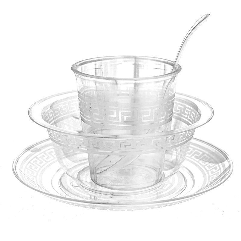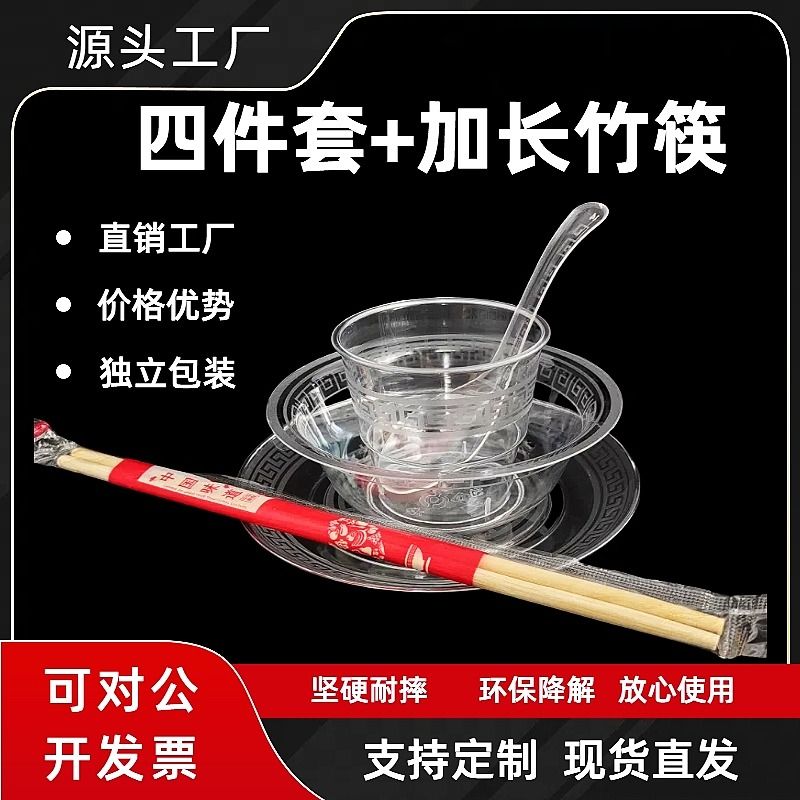 一次性餐具四件套航空水晶碗筷套装饭店蝶杯盘子三件套高档食品级