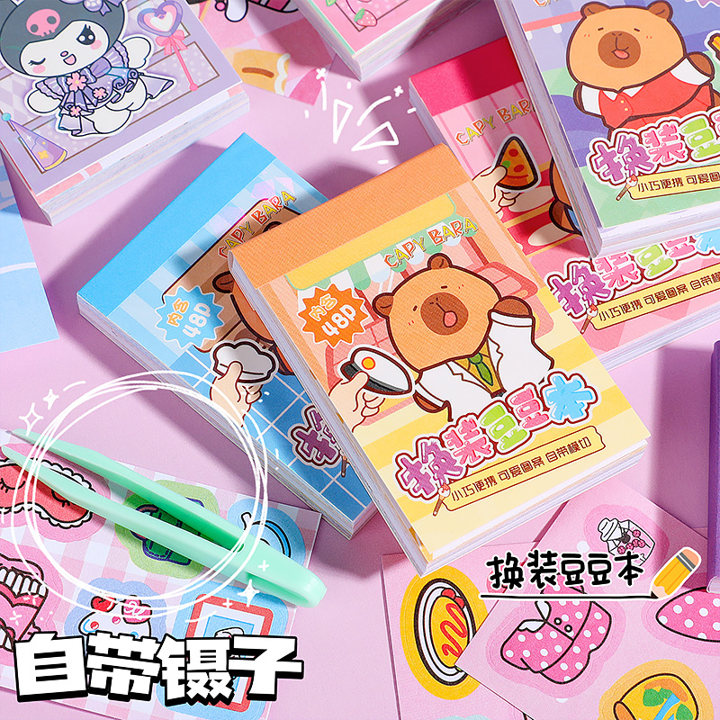 换装豆豆本迷你贴纸变装本可爱小号贴纸本涂色填色手账本子高颜值
