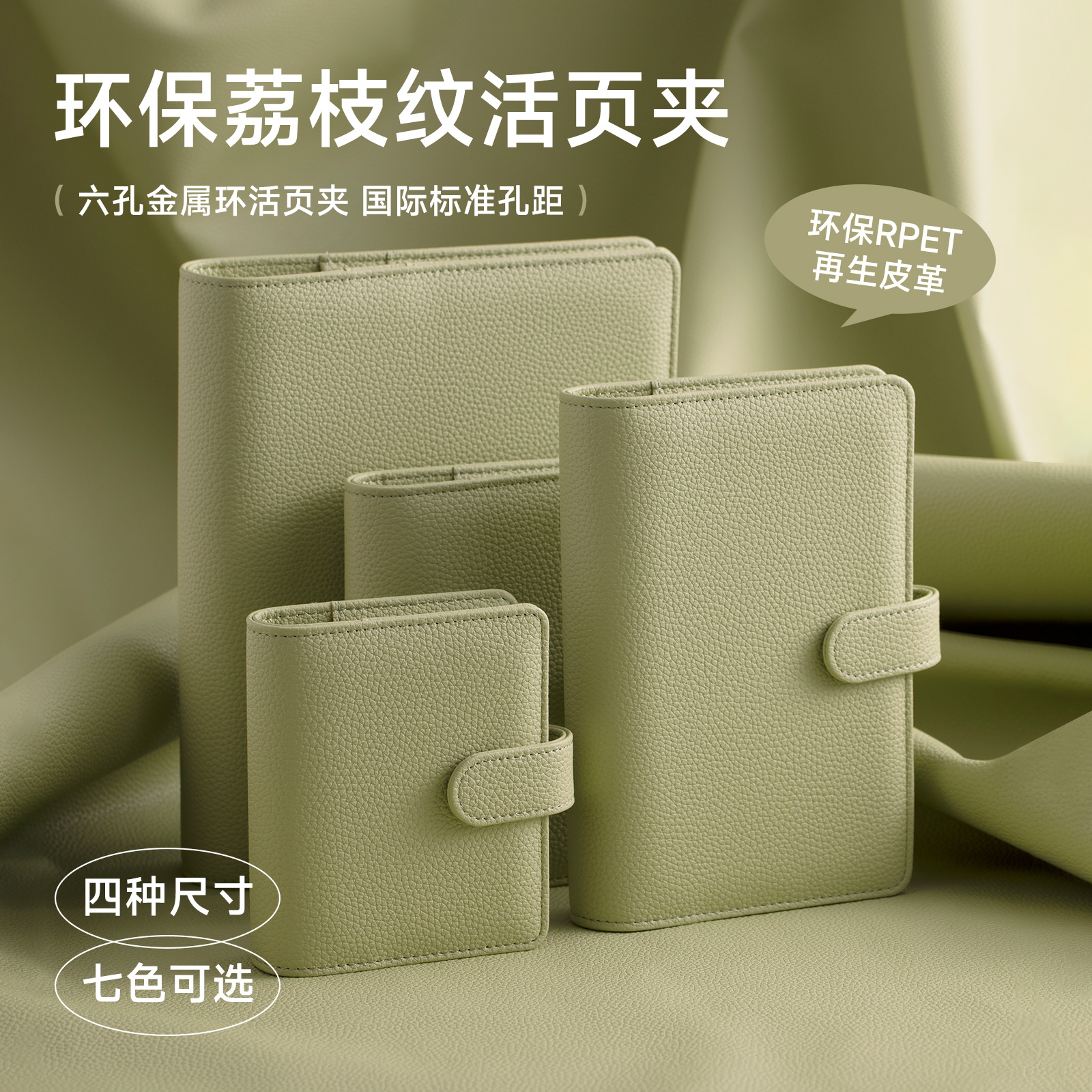 AMEMORY 环保RPET皮质M5活页本手账白瑶纸记事本六孔金属金色活页环A5A6A7手帐横线记事本活页本可拆卸替换