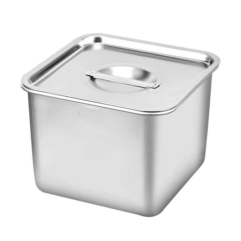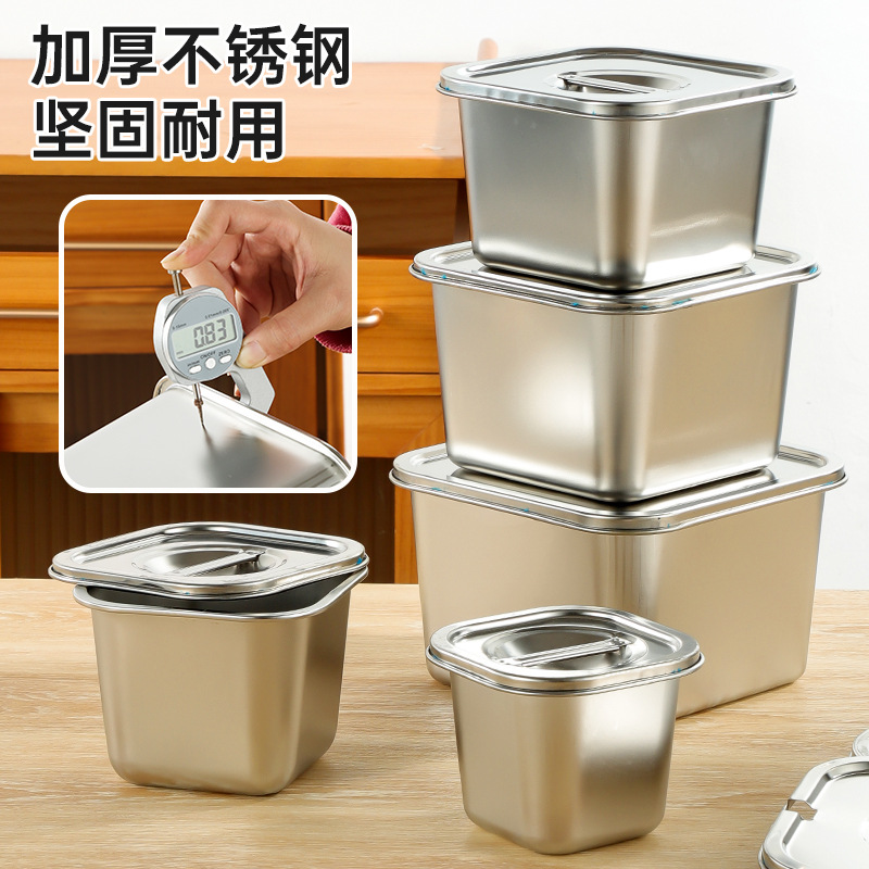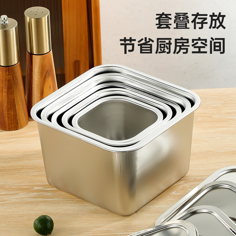 正方形不锈钢盆带盖容器调料盒子摆摊专用酱料桶四方料盒大容量