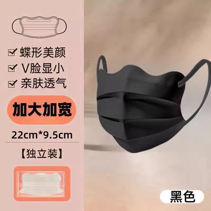 加大号蝶形口罩女高颜值大脸专用口罩大码显脸小夏季一次性不勒耳