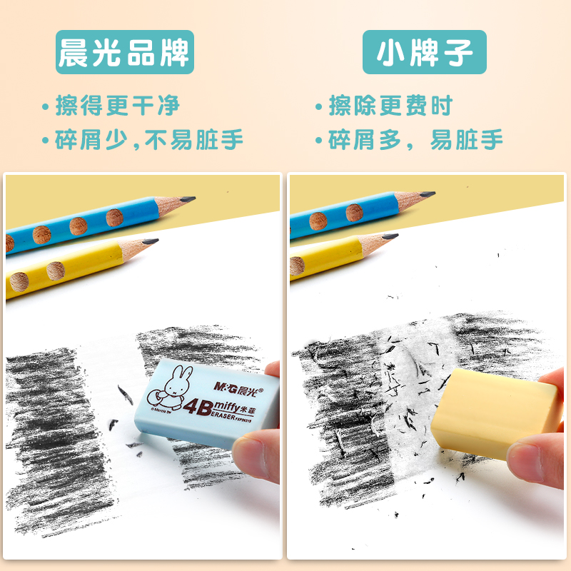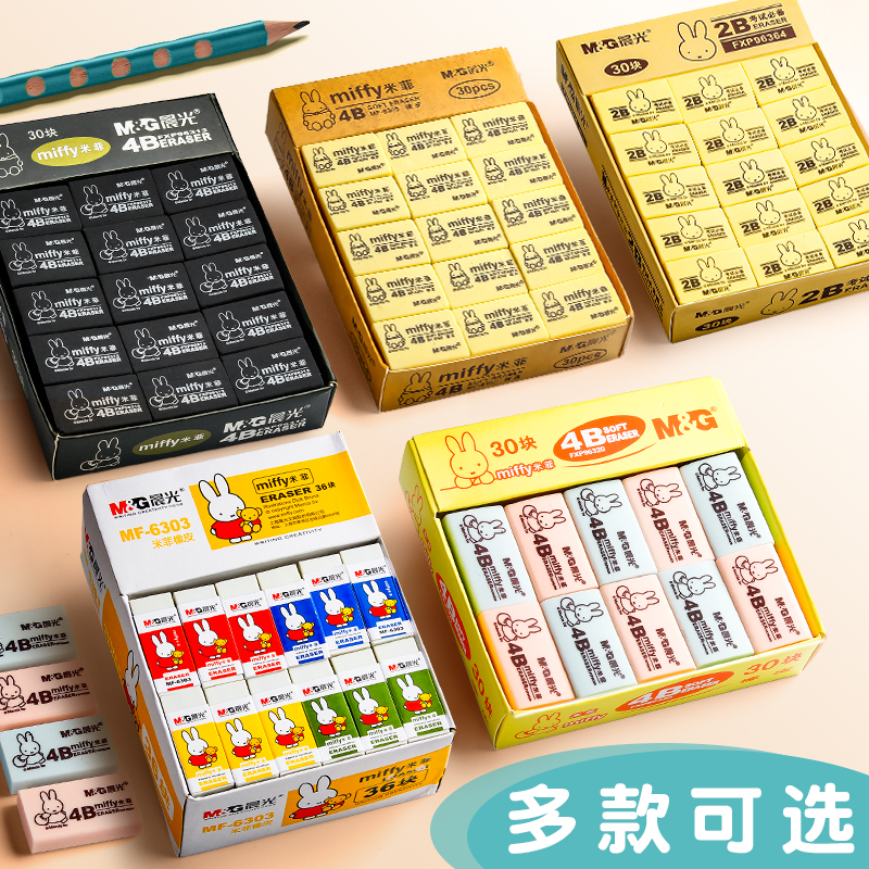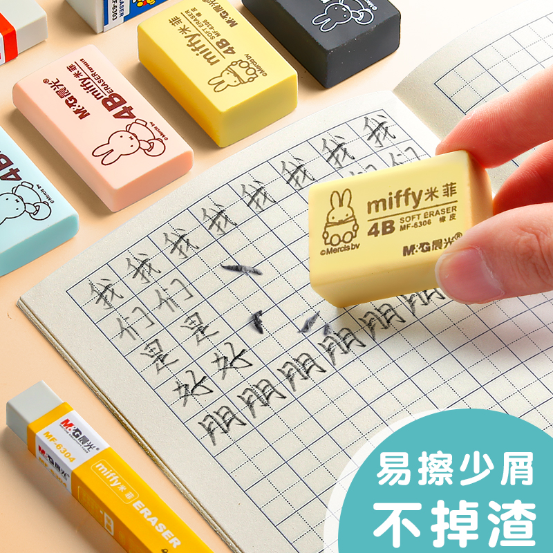 晨光橡皮擦4b米菲卡通橡皮小学生专用擦得干净2b象皮擦儿童创意可爱铅笔像皮擦不易留痕的小文具用品学生奖品