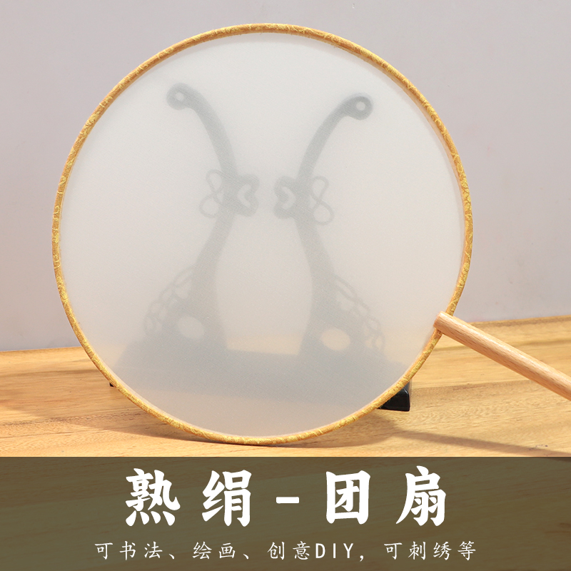 榉木柄真丝团扇空白熟娟创意绘画宫扇古典中国风圆扇刺绣扇子