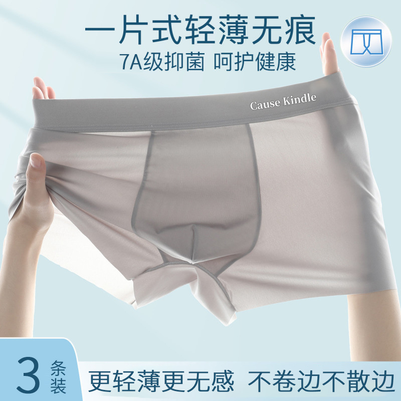 CauseKindle内裤男士夏款冰丝四角裤抗菌裆青少年平角底裤头无感