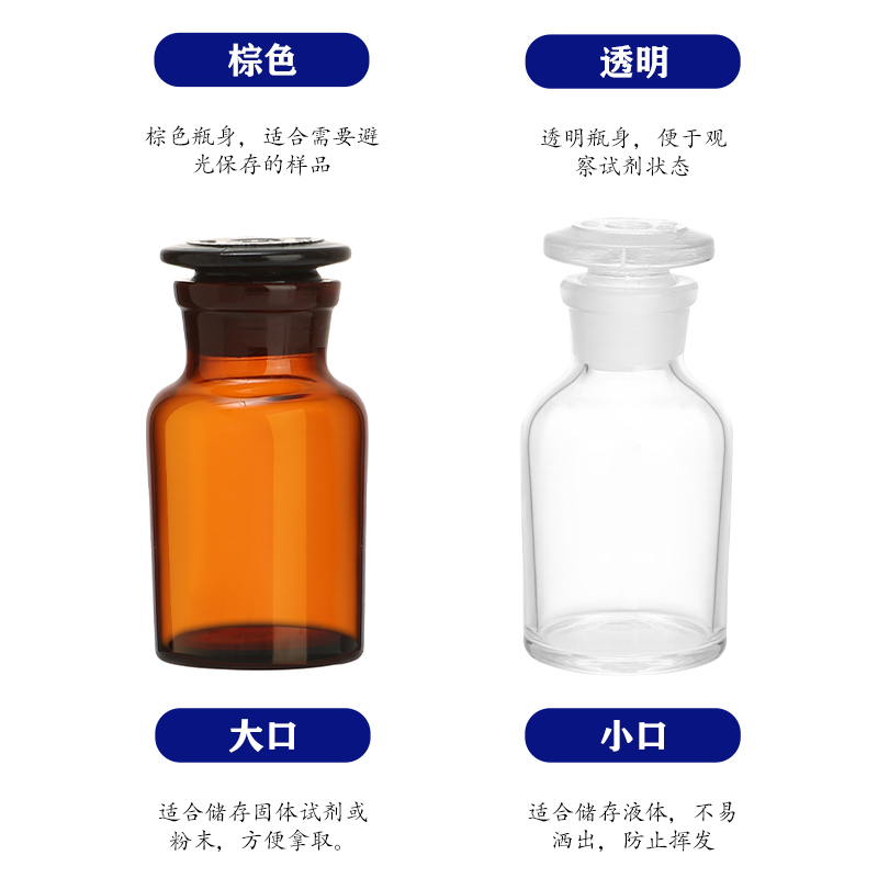 华鸥白色加厚广口瓶磨砂口试剂瓶玻璃瓶酒精瓶密封瓶化学实验器材