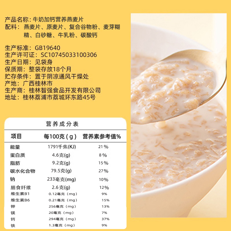 510g袋装牛奶加钙燕麦片即食冲饮经典原味麦片营养早餐官方旗舰店