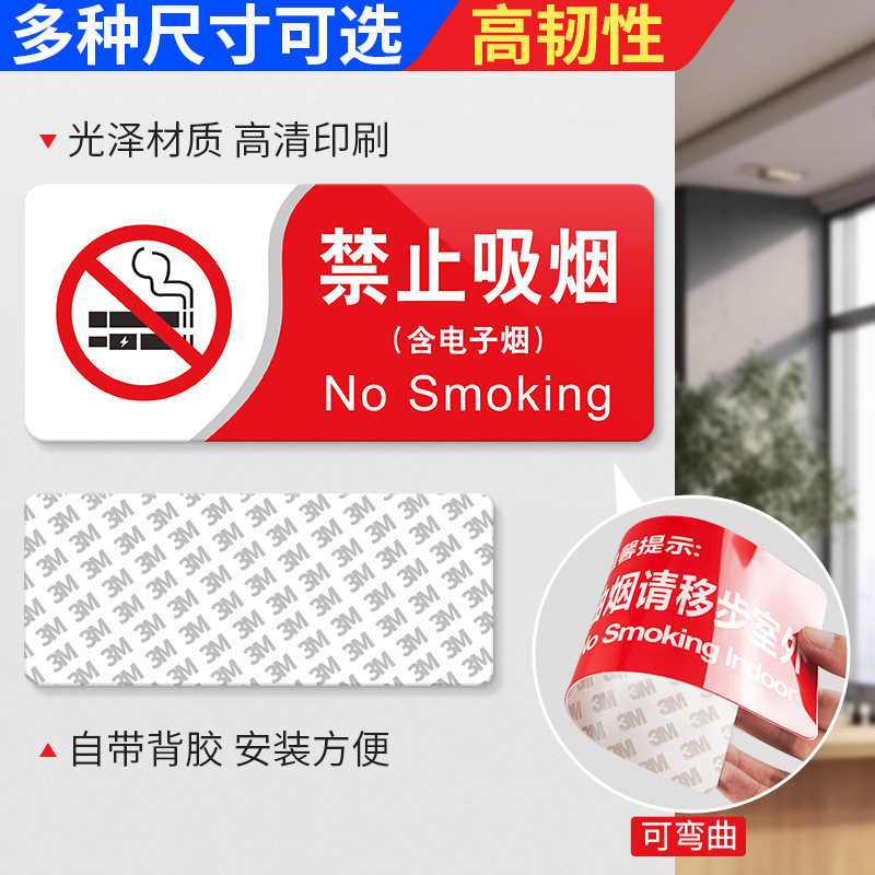 PVC禁止吸烟标识牌请勿抽烟禁烟贴温馨提示牌墙贴标志牌办公室无烟区提醒标语禁烟牌工厂车间仓库警示标示贴