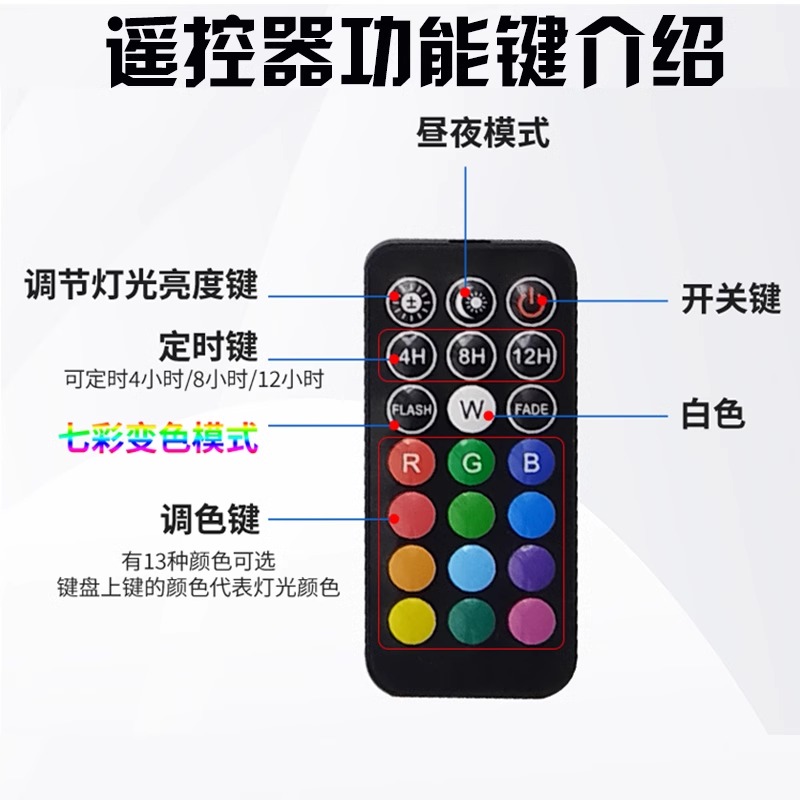 led水族鱼缸防水七彩定时变色遥控潜水照明灯水中水草增色灯光