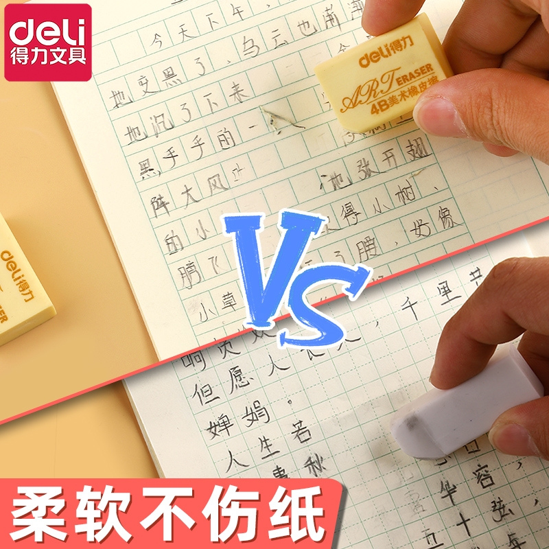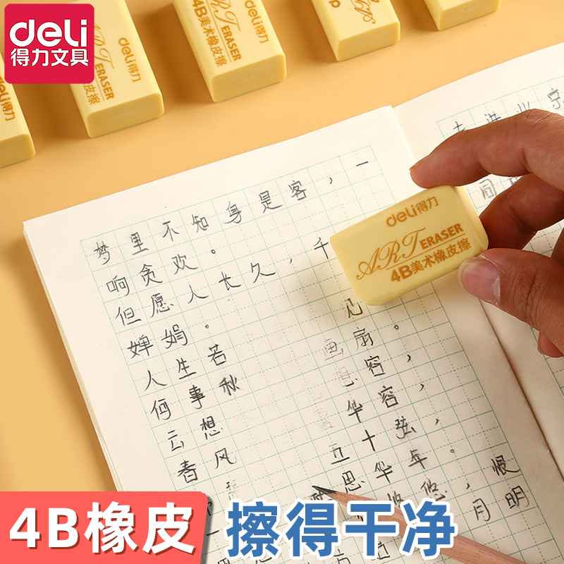 得力橡皮擦学生无屑超干净小学生专用橡皮4B干净不留痕幼儿园专用无毒学生素描橡皮擦美术专用绘图考试橡皮擦