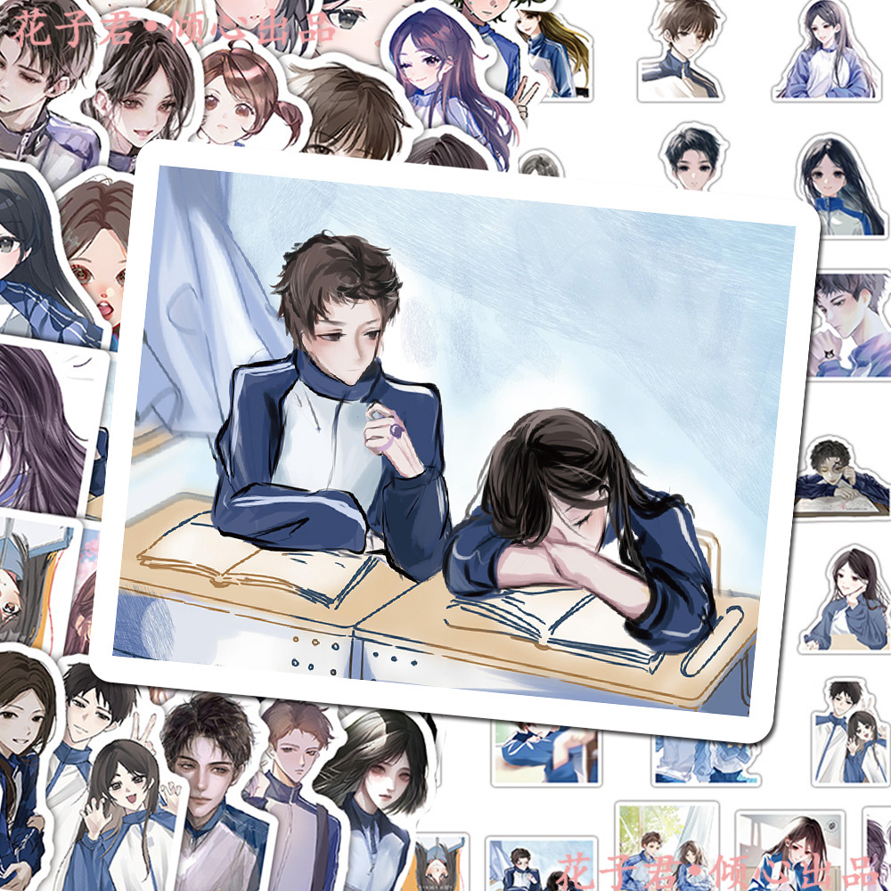 130张焕然臆新cp贴纸超甜周焕秦臆博青春校园插画爆款贴画diy桌面