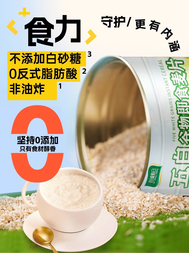 五白谷物即食麦片早餐旗舰店高轻维夕升饱腹食品钙冲饮晚餐燕麦片
