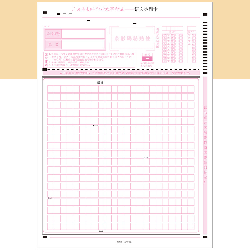 广东省初中学业水平考试语文作文纸答题卡 120克双胶纸 A4双面书写 考前练手模拟 广东中考语文作文纸答题卡