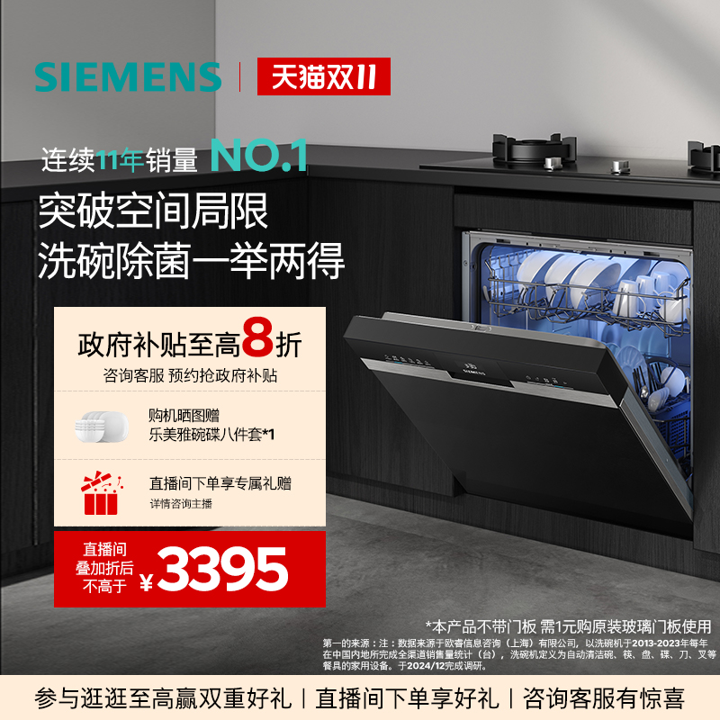 西门子14套嵌入式甲流病毒五星级消杀自动开门速干洗碗机小型S23